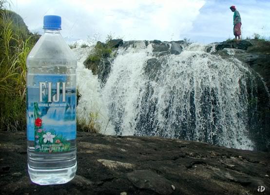 Fiji Water travels across oceans, on diesel-belching ships, in bottles made from Chinese plastic. It bolsters a military dictatorship whose subjects drink dirty H2O. Meet the official drink of the green elite. Read what Mother Jones magazine discovered: http://www.motherjones.com/politics/2009/09/fiji-spin-bottle